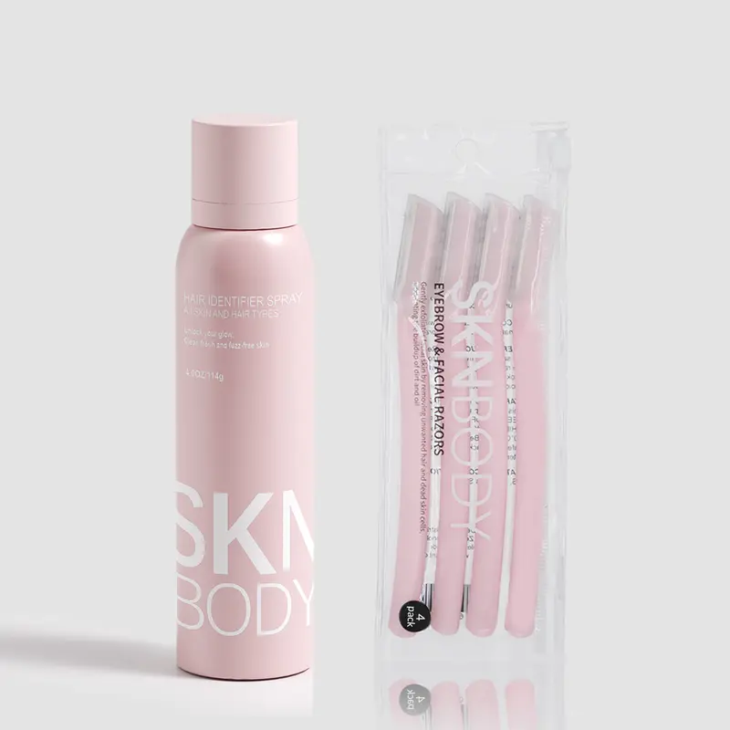 Dermaplaning Elegance: Precision, Glow, Unveiled Radiance. Our signature Facial Hair Identifier Spray* to pair with the Face Razor for effective facial hair removal.